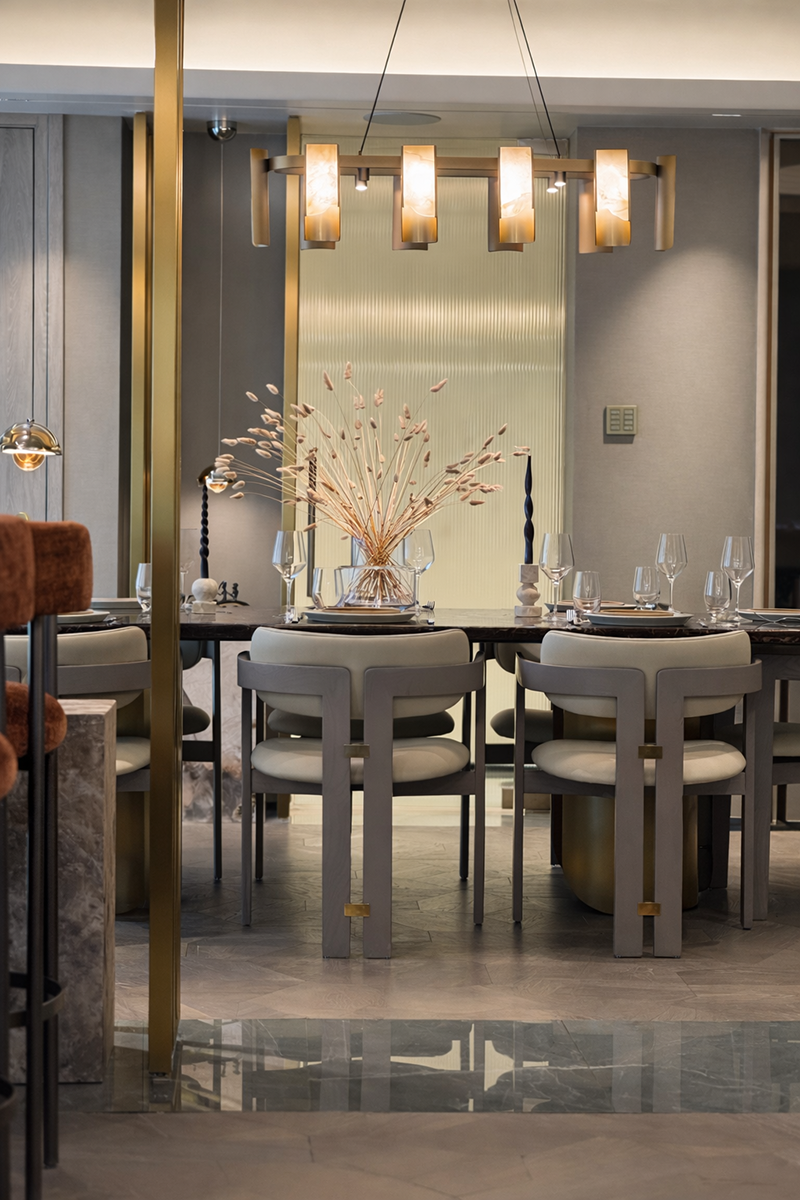 A key aspiration was to create fluid, connected spaces that allow natural light to move freely, while subtly defining zones for living, entertaining and private family moments. The palette was to remain soft and refined, with carefully layered materials, muted tones and tactile finishes that reflect a sense of ease, permanence and quiet luxury.